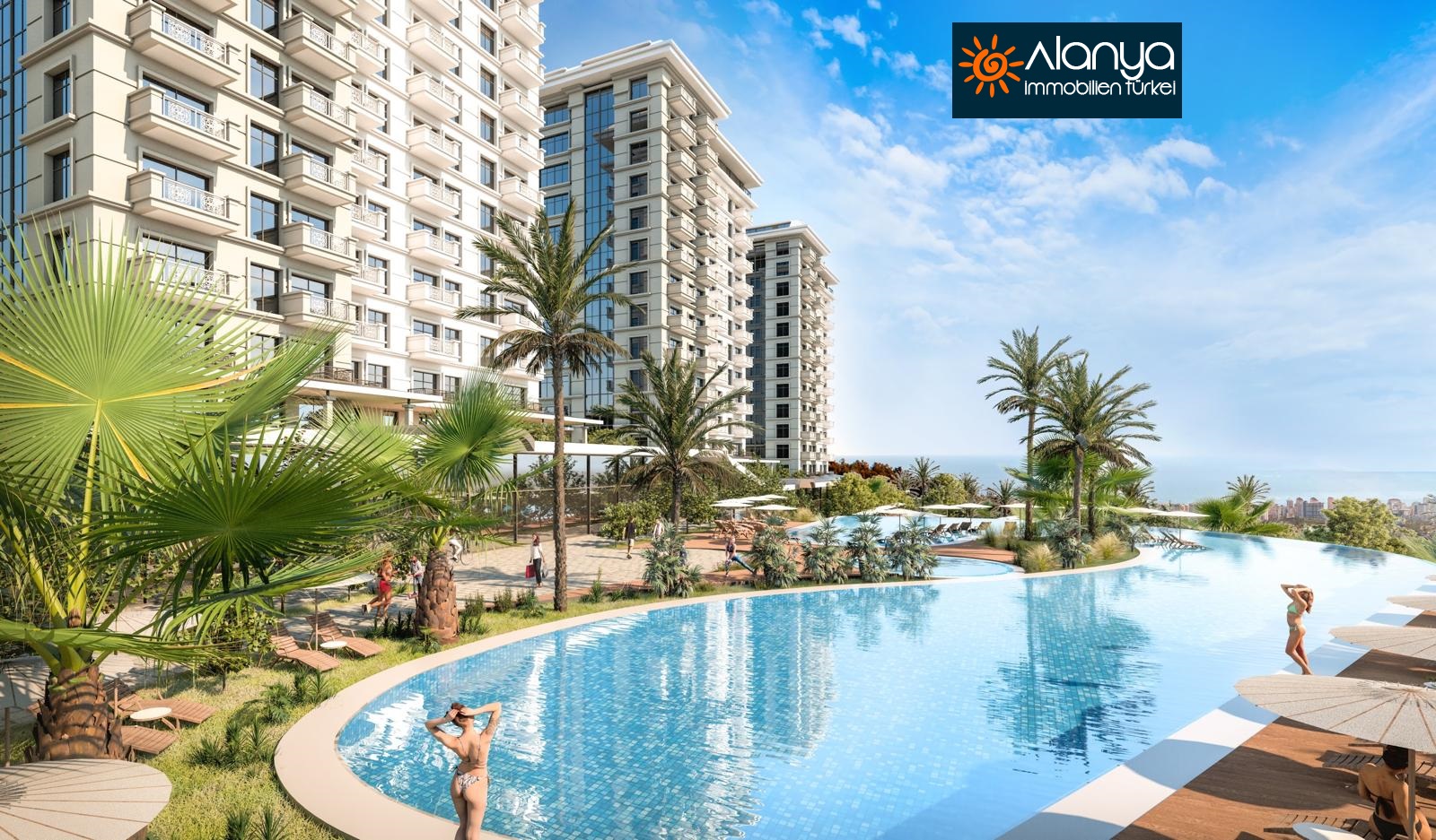 Über die Anlage: Die 2025 erbaute Wohnanlage besteht aus vier 12-stöckigen Wohngebäuden mit einer sicheren und gepflegten Außenanlage auf einem 5.500 m² großen Grundstück im Zentrum von Mahmutlar.