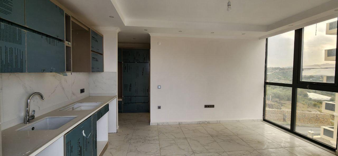 Über die Wohnung: Diese 75 m² große 2+1-Zimmer-Wohnung befindet sich im dritten Stock und besteht aus einem Eingangsbereich, einem Wohnzimmer mit offener Küche, zwei Schlafzimmern, einem Badezimmer und einem Balkon. Die nach Südwesten ausgerichtete Wohnung bietet einen herrlichen Blick auf das Mittelmeer und die Umgebung von Alanya.
