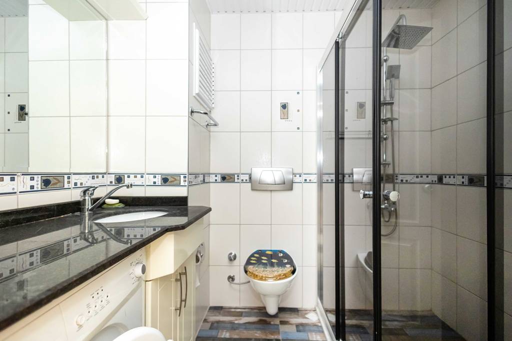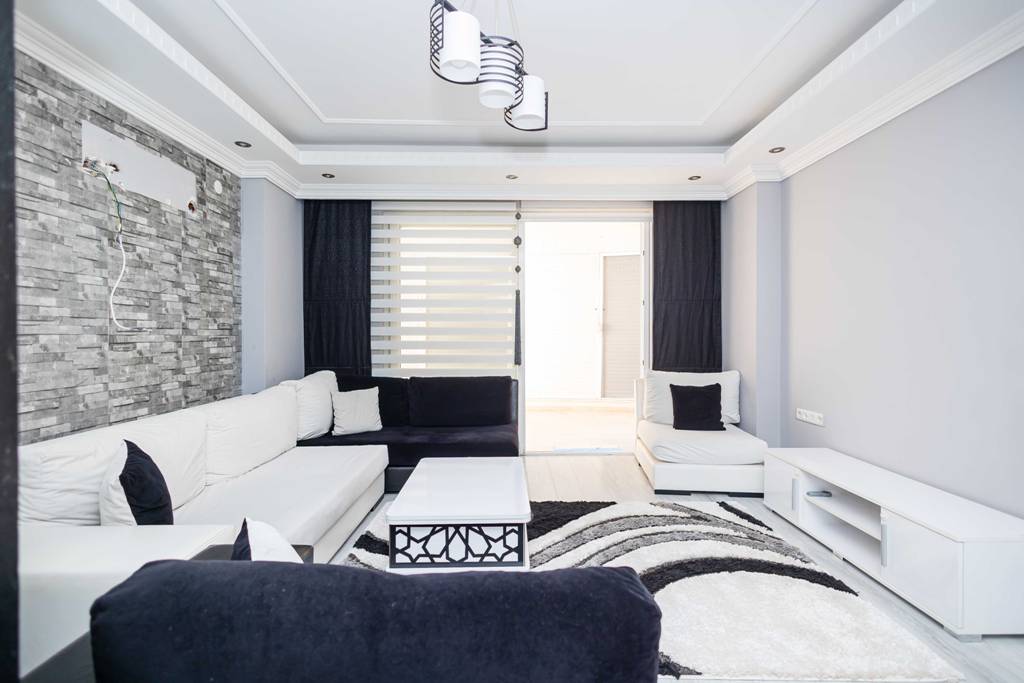Diese 90 m² große Wohnung in Alanya Büyükhasbahçe Fığla Strasse verfügt über 2 Schlafzimmer, 1 Wohnzimmer, eine offene Küche, 2 Badezimmer, 2 WCs und 1 Balkon.