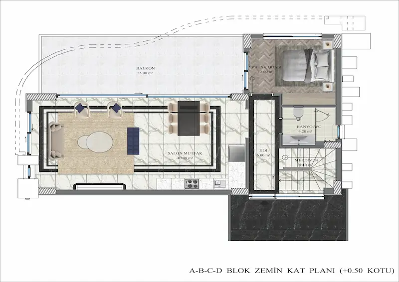 Das Projekt umfasst 4 freistehende Villen mit moderner und einzigartiger Architektur. Jede Villa bietet seitlichen Meerblick, Bergblick und Stadtblick.