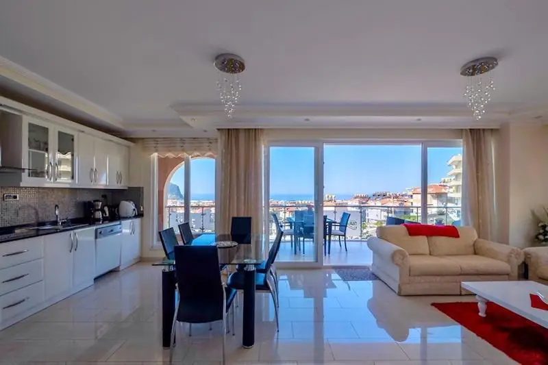 Diese geräumige 4-Schlafzimmer-Maisonette-Wohnung in der Yılmazlar Residence liegt im ruhigen und dennoch zentralen Viertel Sugözü und bietet einen spektakulären Meerblick und komfortablen Wohnkomfort.