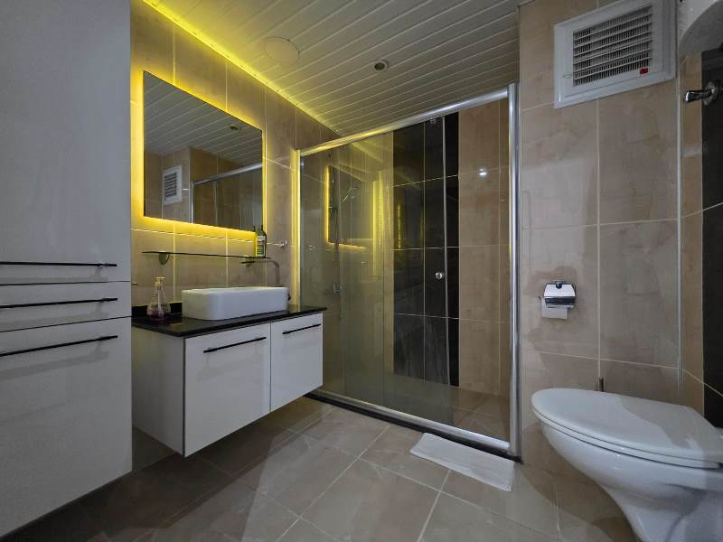Die Immobilie befindet sich in Alanya Mahmutlar 400m zum Strand. Die Wohnung verfügt ca 120m2 mit einem Wohnzimmer, offene Küche, 2 Schlafzimmer, 2 Badezimmer, Korridor und Balkon.