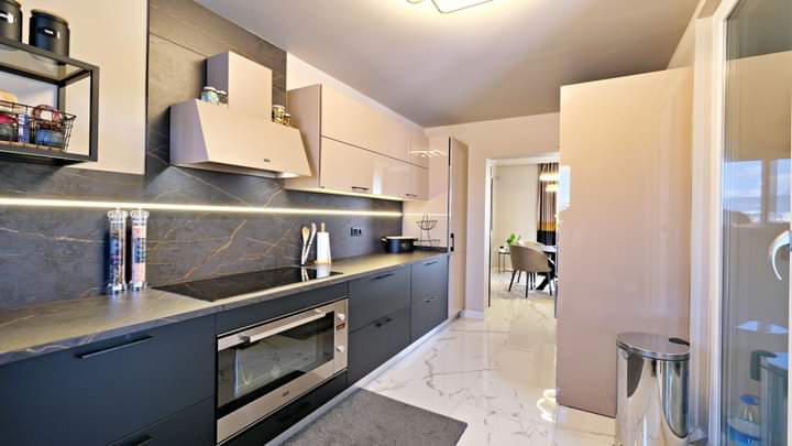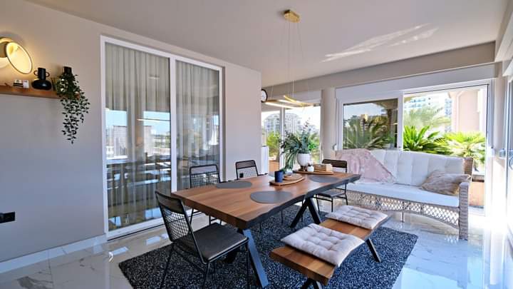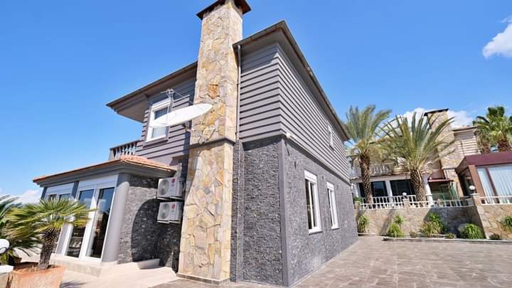 Dies ist ein wirklich luxuriöses Anwesen, wunderschön gestaltet und möbliert und mit einer atemberaubenden Aussicht. Im Inneren gibt es 250 m2 mit Marmor- und Keramikböden, und das Layout verbindet geschickt Innen- und Außenleben in einer perfekten Kombination. Der geräumige, offene Wohnbereich ist sonnig und entspannend, mit vielen Fenstern. Es gibt eine moderne separate Küche von Kelebek Möbelhaus mit allen Franke Haushaltsgeräten. Von hier aus können Sie in den Wintergarten gehen, der Glas hat, was geöffnet werden kann. Im Erdgeschoss befindet sich auch ein geräumiges Schlafzimmer mit Doppelbett und ein modernes Badezimmer mit Dusche.