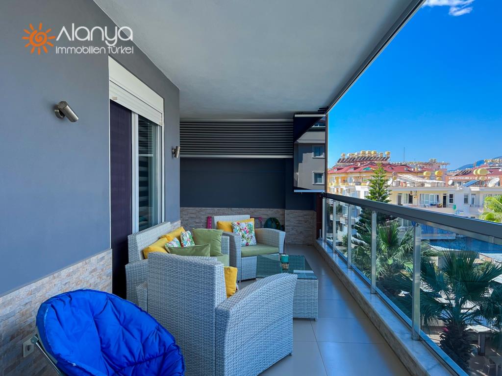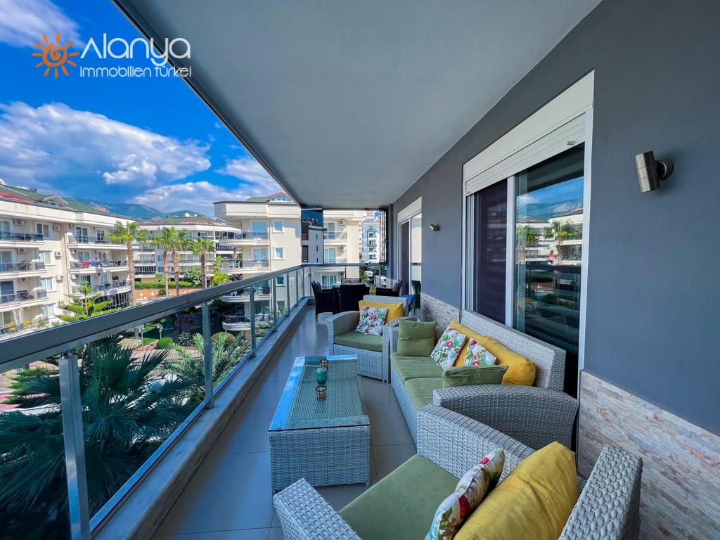 Die Residence befindet sich in Alanya Oba-Tosmur 550m zum Strand. Die Wohnung verfügt ca 100m2 mit einem Wohnzimmer, offene Küche, 2 Schlafzimmer, 2 Badezimmer und Balkon.